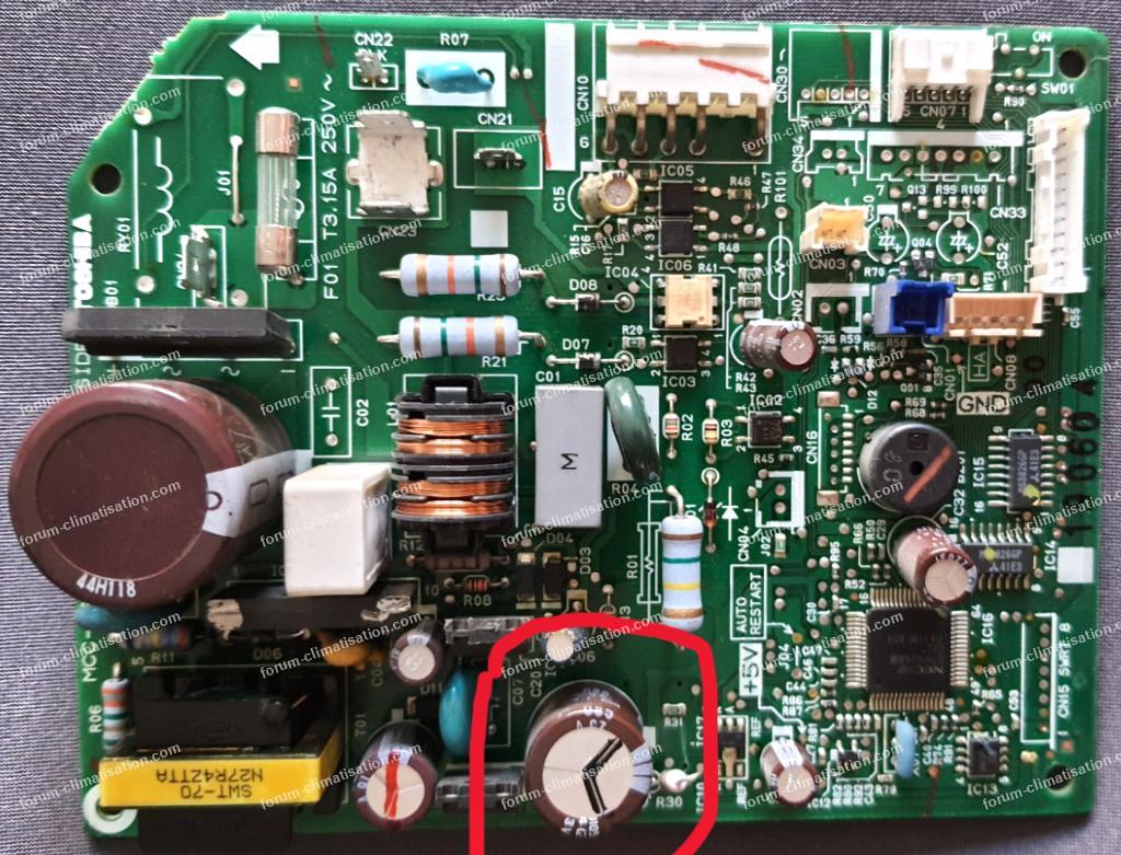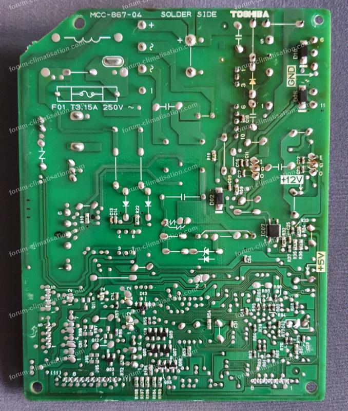 J'ai parcouru (dans la limite de mes compétences) les différents sujets liés à cette "fameuse" carte car je rencontre à mon tour une panne sur unité intérieure Toshiba RAS-M13UKV-E3 qui ne s'allume plus du tout, bien que correctement alimentée.