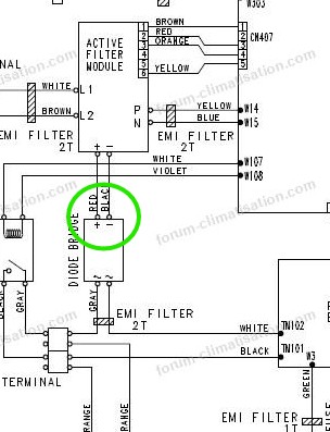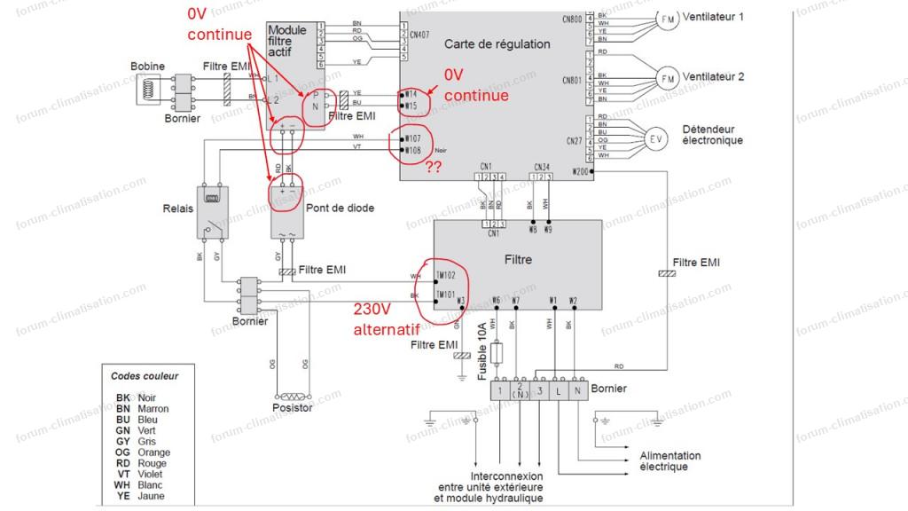 Pas de led allumées sur la carte inverter pour le filtre actif a mesurer le 230ou 330v ? sur les quelles bornes, w14 et w15?
