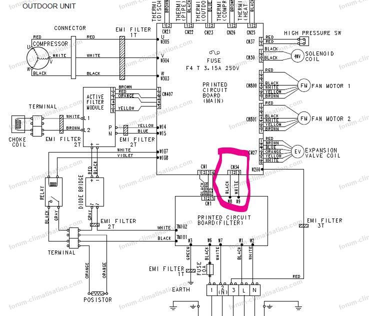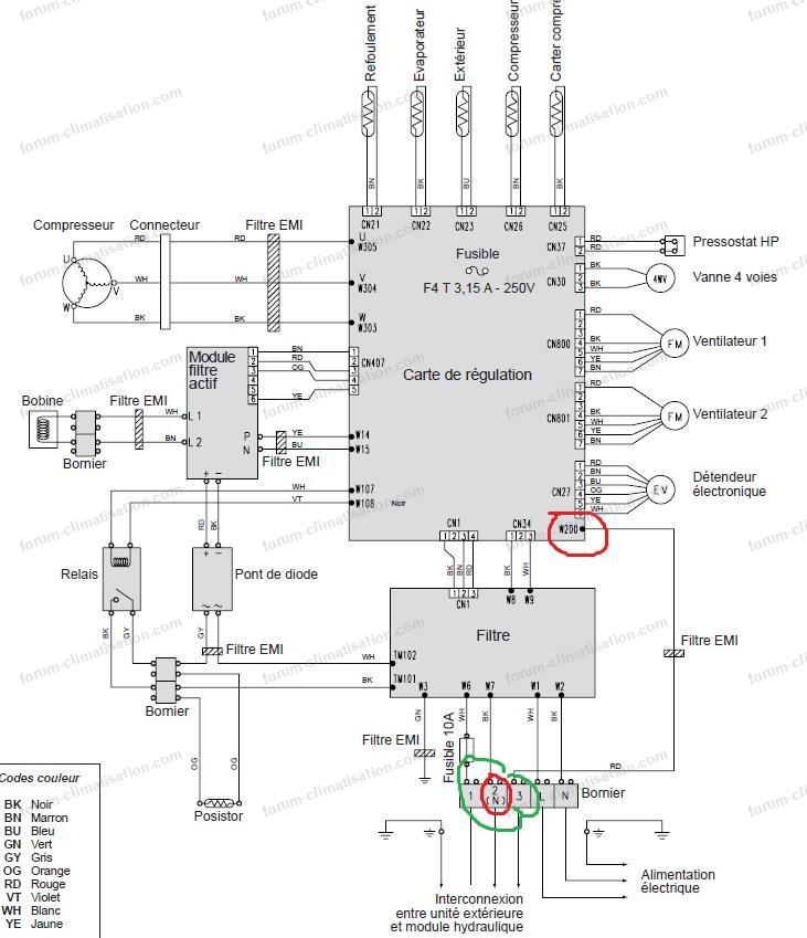 Le courant doit donc obligatoirement passer par le Posistor pour atteindre les bornes W14/W15 de la carte Inverter.