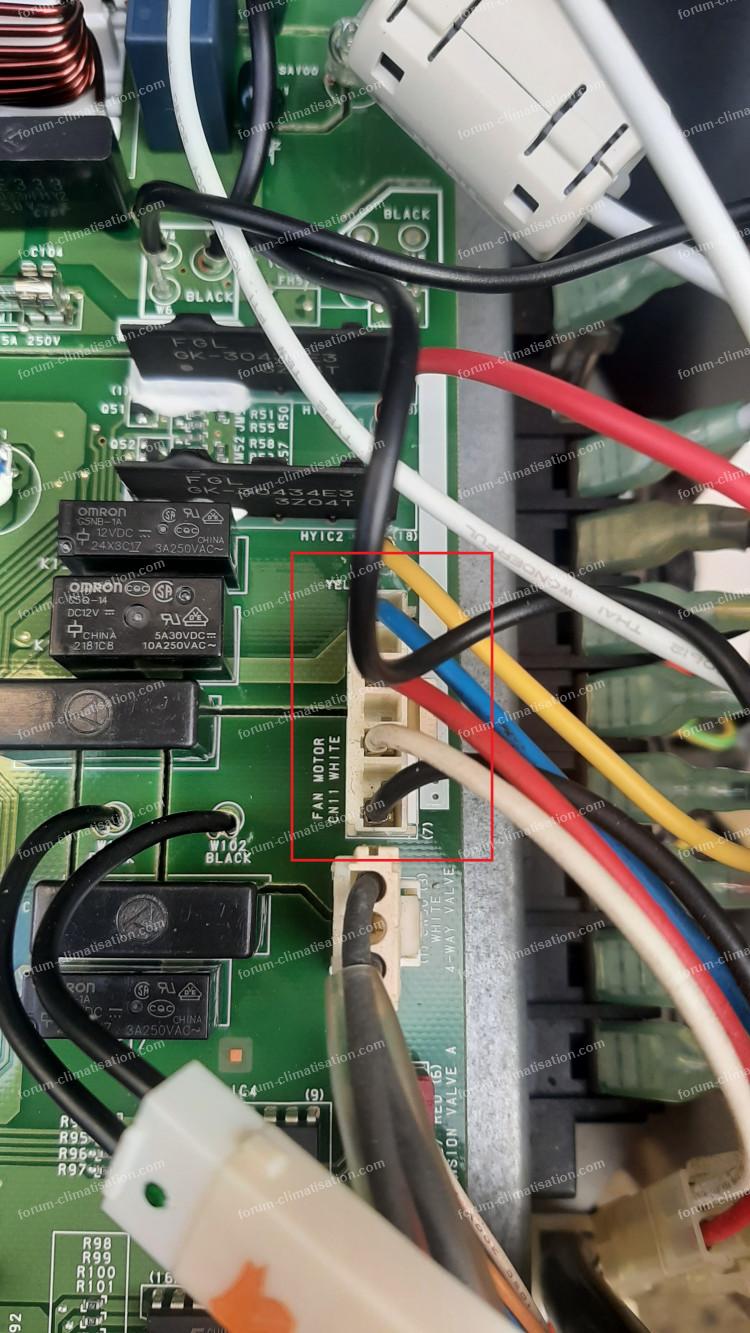 Je pense que lorsque j'ai remis sous tension l'unité extérieure, le relais a de nouveau claqué (je n'ai pas vérifié), car le moteur du ventilateur était à nouveau arrêté. Le ventilateur s'est lancé lors de la mise sous tension de l'unité extérieure, puis s'est arrêté après le démarrage de l'unité intérieure (je suppose, je ne pouvais pas être devant les deux en même temps).