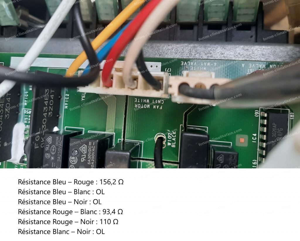 - N°7978 : Bonjour. Réf de la climatisation Airton TAC-(09+12) CHSA (H) panne affichée 06. Je constate que le ventilateur de l'UI ne tourne pas. Démontage, essais à vide = il tourne. Je change les roulements. Essais : Il se lance,...