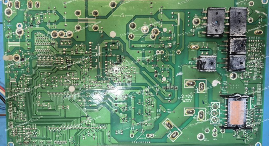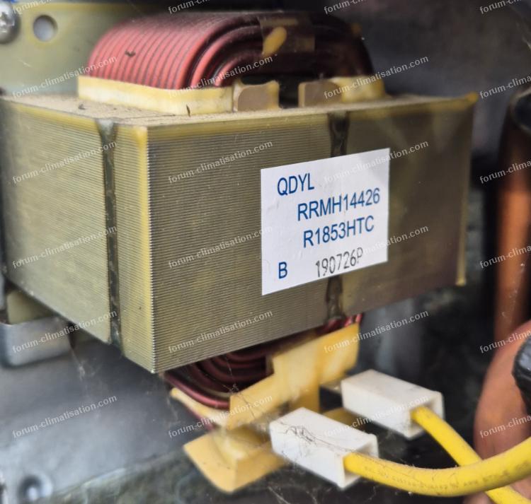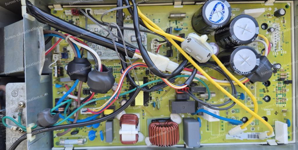 J'ai demandé à l'unité intérieure de lancer le chauffage, et le volet s'est ouvert sur l'unité intérieure. Sur l'unité extérieure, j'ai entendu un clic de déclenchement, et tout à coup, j'ai vu une étincelle au niveau des connecteurs qui vont vers le transformateur situé en dessous du bloc où se trouve la carte mère. Cela a fait disjoncter le petit disjoncteur qui alimente la PAC.