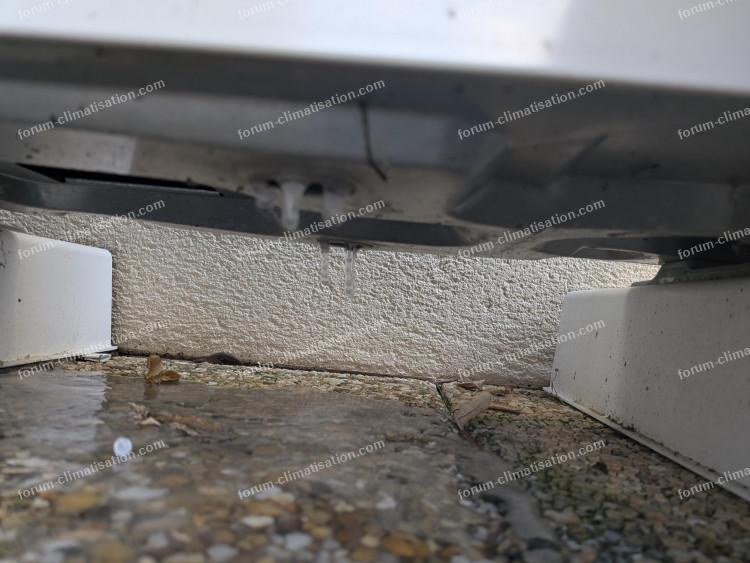 Je me retrouve beaucoup de glace sur le dessous du bloc extérieur et souhaite avoir vos avis quant à la solution à apporter pour récupérer cette eau et l'évacuer.