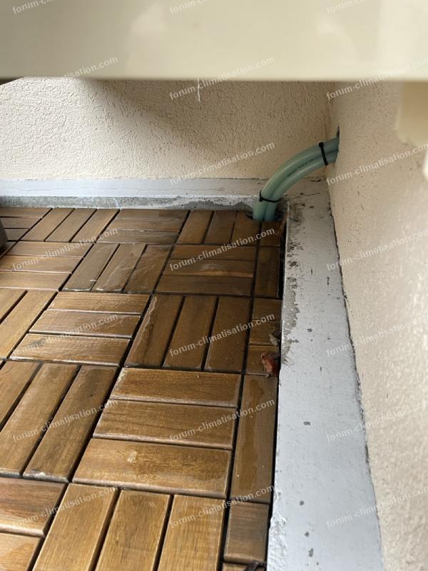 Je me souviens que l'installateur m'avait dit qu'il ne mettait pas de tuyau pour évacuer l'eau du bloc car ceux-ci avaient tendance à geler et que cela poserait plus de problèmes.