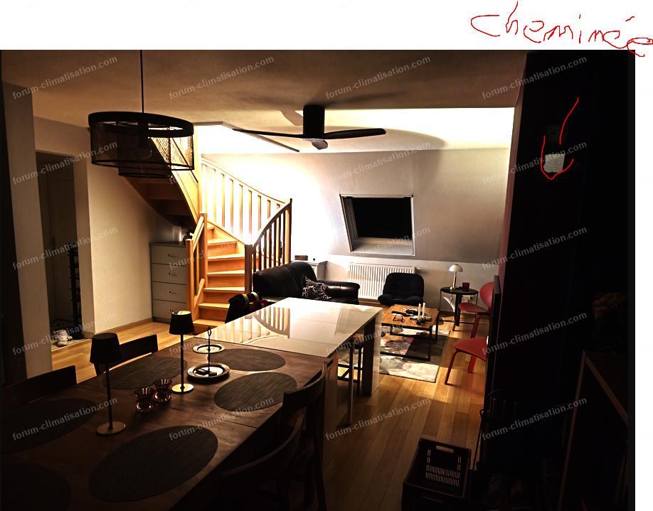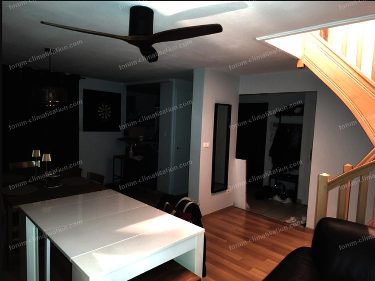 J’ai également un insert pour les soirées en hiver avec un ventilateur de plafond qui permet de stratifier l’air et avoir une température homogène sur tout le RdC, ça sera un plus pour brasser au mieux la chaleur de la clim sur le RdC.