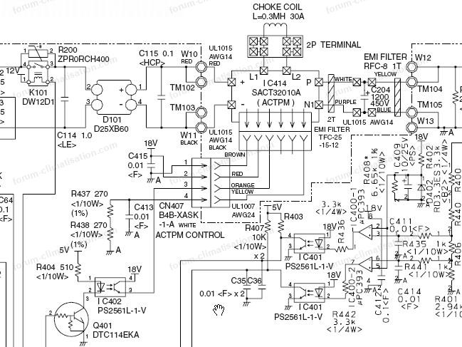consulter ce sujet Erreur de communication série groupe AOYG18LAT3 sur le forum ClimatisationCelui en rose est un relais, et il n'est pas sûr qu'il soit HS ; si le défaut est avant lui, dans le jaune (PFC), alors il est à priori indemne. Tout dépend où est le CtCt. Pour expliquer la disjonction, ou bien le PFC est en CtCt, ou bien il est bon et le CtCt est sur la HT, et dans ce cas, le rose doit aussi être HS, contacts soudés.