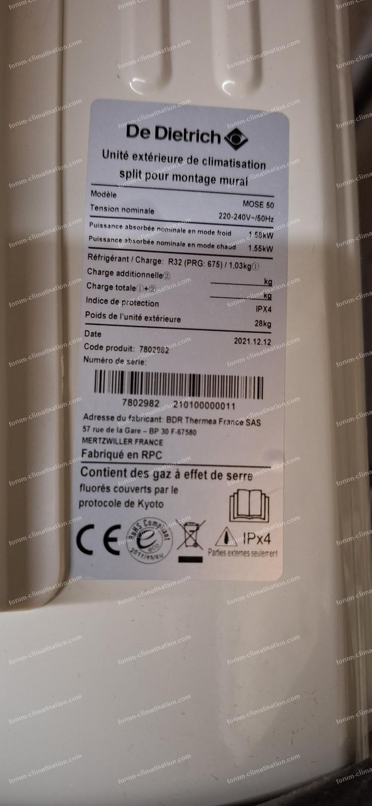De Dietrich MOSE 50, unité extérieure capacité de refroidissement: 5,3 kW - capacité chauffage: 5,4 kW, réfrigérant R32